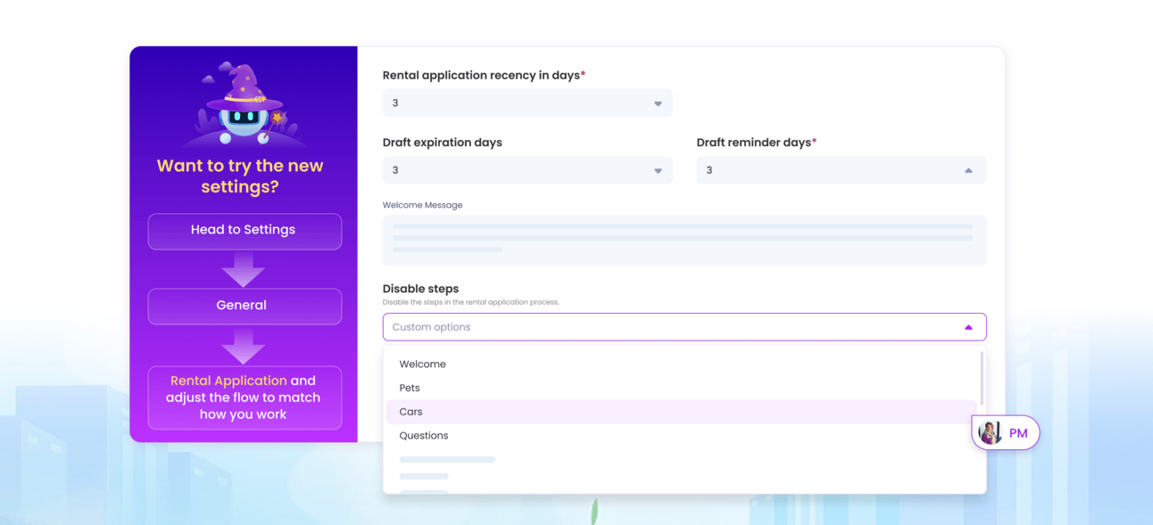 Head to Settings → General → Rental Application and adjust the flow to match how you work.